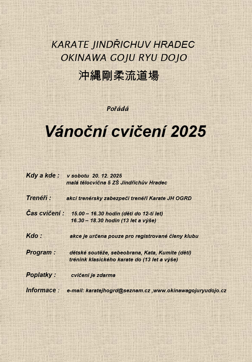 Kalendář akcí Karate J. Hradec Okinawa Goju Ryu Dojo 2025