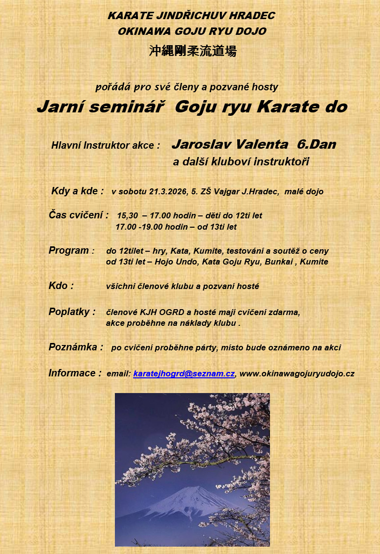 | 20. - 21.4. | Gasshuku s Tetsuji Nakamurou Senseiem 7Dan | Polsko - Wroclav | info: www.gojuryu.pl |